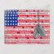Os Estados Unidos estão listados alfabeticamente numa bandeira americana, acompanhados por dog tags militares. O texto no verso é editável.