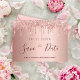 Uma chave e uma tendência Salve a placa Date para uma festa de aniversário (ou qualquer idade) de 90. Um fundo metálico cor-de-rosa feminina, rosa dourado falso, decorado com pingos falsos de rosa dourado. Modelos para uma data e nome/idade 90. Letras rosa escuras de cor dourada. O texto: Salvar a Data é gravado com um script de estilo com letra de tendência grande. Fundo: rosa dourado. Sem design postal. Se quiser design de cartão-postal na parte de trás, encontrará isso na nossa loja.