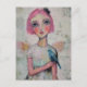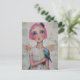 Cartão Postal Anjo com cabelo cor-de-rosa e pássaro azul