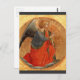 Arte cristã fina representando anjo ajoelhado com as mãos amarradas. Pintura em círculo de ouro pela artista italiana Fra Angélico c1437.