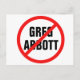 Greg Abbott com um círculo vermelho e um X sobre seu nome. Distribua estes cartões postais Anti-Governador Abbott em todos os lugares para que os Texanos se levantem e votem contra ele nas eleições de 2022 no Texas. O vamos tem um democrata no poder.