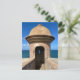 Volte no tempo com este cartão postal San Juan, Porto Rico, com uma caixa histórica (garita) em Castillo San Felipe del Morro. Ao ignorar o profundo Mar Caribe azul, esta estrutura icônica de forte representa a rica história de Porto Rico e a herança colonial espanhola. Um imperativo para amantes da história, entusiastas do viagem, e colecionadores postais, este design capta a beleza e a força do marco mais famoso de Old San Juan. Perfeito como uma lembrança de Porto Rico ou viagem!