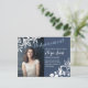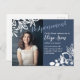Alterações inesperadas de data podem ocorrer. Envie aos seus convidados um cartão postal de adiamento de data com cinzas azuis e tema de cor floral branca. Estes cartões de anúncio de adiamento são perfeitos para qualquer Bat Mitzvah, graduação, Quinceanera, aniversário de adolescentes, aniversário, formatura ou celebração de casamento.