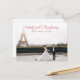 cartão de feriado do anúncio do casamento com um roteiro vermelho elegante. A imagem de casais pode ser personalizada.