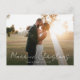 cartão de feriado do anúncio do casamento com um elegante roteiro de na moda preto e um obrigado que você envia aos seus convidados. A imagem de casais pode ser personalizada.