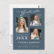Cartões postais de anúncio de graduação em fotos modernas. Esse design personalizado combina um script de estilo caligráfico e manuscrito com texto moderno em cinzas pretas e leves em um fundo azul empoeirado de na moda. A parte traseira do design oferece campos de texto personalizáveis para suas informações de lançamento e formandos. Para ver mais itens como este, visite minha loja aqui em "www.Zazzle.com/LakeViewCardCo". Obrigados