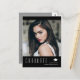 Cartões postais de anúncio de graduação em na moda, com texto moderno e aparência elegante e profissional. A foto dos formandos na frente da placa é aprimorada por quadros translúcidos finos na parte superior e inferior, enquanto a parte traseira da placa oferece espaços de texto personalizados para informações sobre a graduação e a viagem futura. Para ver mais itens como este, visite minha loja aqui em "www.Zazzle.com/LakeViewCardCo". Obrigados