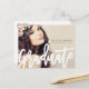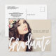 Cartão postal de anúncio de graduação de script moderno. Personalize completamente todas as informações e fotos.