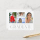 Cartão postal Simple Script Multi Photo Graduation Announement apresenta quatro das suas fotos favoritas da sua faculdade ou formando de segundo grau na frente com a elegante camada de "Formando" do script de caligrafia prateada moderna. Simples, na moda e elegante. Criado por ©Evco Studio www.zazzle.com/store/evcostudio