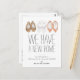 Um moderno cartão postal de anúncio de mudança para nova casa. Com uma ilustração em aquarela de sleepers de animais infantis e título "Temos uma nova casa" em tipografia manuscrita. Personalizado com sua mensagem de preferência, seu novo endereço e assinatura