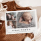 Um doce anúncio de nascimento em colagem de 3 fotos com um nome simples e moderno em colagem na frente. O verso é um cartão-postal enviável com um cabeçalho de nome completo grande e uma mensagem pessoal da família. Clique no botão editar para personalizar este design com suas fotos e detalhes.