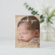 Personalizado com a foto do seu bebê na frente e uma mensagem especial no verso. Este design usa uma fonte elegante manuscrita para um toque de sofisticação. Expresse sua emoção ao anunciar o nascimento do seu filho e envie sua gratidão ao mesmo tempo. A sobreposição das palavras "Obrigado" está em uma fonte branca moderna com uma leve sombra cinza para legibilidade.