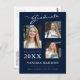 Cartões postais de anúncio de graduação em fotos modernas. Este design personalizado combina um script de estilo caligráfico e manuscrito com texto moderno em cinza branca e luz sobre um fundo azul de marinho na moda. A parte traseira do design oferece campos de texto personalizáveis para suas informações de lançamento e formandos. Para ver mais itens como este, visite minha loja aqui em "www.Zazzle.com/LakeViewCardCo". Obrigados