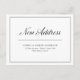 Estes cartões postais de anúncio simples e elegantes, em movimento preto e branco apresentam uma caligrafia clássica de script que diz "novo endereço". Um quadro negro moderno traça o cartão. Há espaço para uma mensagem pessoal nas costas. A forma profissional e na moda perfeita de permitir que amigos, clientes familiares ou empresariais e clientes saibam que você mudou.