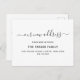 Estas elegantes, negras e brancas mudanças de cartões postais de endereço incluem as palavras "nosso novo endereço" em textos negros modernos e de tendências e texto em um simples fundo branco.
