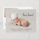Cartão postal de anúncio de nascimento de fotografia mínimo para anunciar a chegada do seu bebê à família e aos amigos. A foto de seu recém-nascido preenche a frente e está sobrecarregada com "ela está aqui!" "ele está aqui!" ou "Estou aqui!" em um roteiro contemporâneo (você pode mover este texto para outra área do cartão dependendo da sua foto selecionando "editar na ferramenta design"). Adicione o seu nome, a data de chegada e as estatísticas de nascimento abaixo. No verso, adicione uma foto adicional, uma mensagem de "bem-vindo", os nomes dos pais e irmãos e um obrigado personalizado que você envia.