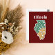 Design tipográfico colorida apresenta o apelido do Estado de Illinois "Prairie State" em forma de estado, arte de palavras