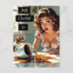 Apenas checando o cartão postal. Diga oi e mantenha-se em contato com um amigo da família com este cartão-postal hiper realista e bonito com uma ilustração engraçada de uma mulher tentando pegar uma xícara de café derramada que seu gato derrubou.