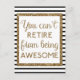 Um cartão postal de aposentadoria preto e dourado, que contém as palavras "você não pode se aposentar de ser incrível" em um design de ouro brilhante. Por favor, note que não existe um efeito de brilho real, mas um efeito de design.