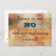 Sabedoria inspiradora e conselhos - texto diz Aprenda a dizer Não sem se explicar. O fundo é um design de textura abstrato rústica usando cores de queda como vermelho, laranja e amarelo. As cores são tons sutis e o fundo tem um aspecto desbotado.