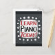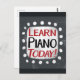 "Aprenda Piano Hoje" é um design de texto fofo em cinza com texto preto e vermelho. Ele está em uma forma de destaque branca e pontinhos brancos ao redor.