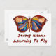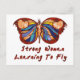 Celebre o crescimento do seu poder emergente com esta borboleta multicolorida com o corpo de uma mulher no centro e as palavras "Mulher forte aprendendo a voar."