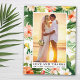 Elegante Watercolor Tropical Coral Floral, Greenerescência e Palm Deixa Noiva e Amor e Obrigados Foto de Casamento Obrigado Cartaz