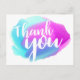 Cartão Postal Aquarela Obrigado Azul, Púrpura e Turquesa