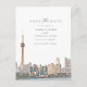 Isto apresenta uma pintura aquarela da silhueta de Toronto, Canadá. Use este modelo para editar as fontes, cor da fonte e cor do fundo para atender às necessidades do seu evento. Edite a maioria das palavras para atender às suas necessidades e adicione facilmente uma mensagem especial no verso do convite.