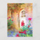 Rosas vermelhas de sangue num jardim romântico de cabanas. Pintura aquosa editada digitalmente em papel.