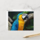 Cartão de animais com uma bela arara azul e amarela. A arara-azul-amarela (Ara ararauna), também conhecida como arara-dourada, é um grande papagaio sul-americano com partes superiores azuis e amarelo sob partes. É membro do grande grupo de papagaios neotropicais conhecidos como araras. Ela habita florestas (especialmente varzea, mas também em trechos abertos de terra firme ou floresta não alagada) e florestas da América do Sul tropical. Eles são populares na avicultura por causa de sua cor impressionante, habilidade de falar, disponibilidade pronta no mercado, e estreita ligação com os humanos.
