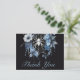 Compartilhe seus Obrigados especiais com esta aranha flórica azul-turva e gótica, escura e humorada. Obrigado design postal apresentando uma aranha floral azul empoeirada e empoeirada na web sobre um fundo preto. Adicione sua mensagem especial e personalize este modelo para atender às suas necessidades.