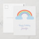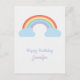 Cartão postal com um lindo arco-íris pastel e suas duas nuvens azuis para um aniversário romântico. Com texto personalizável, pode servir para outras ocasiões, como chá de bebê, Dia dos Namorados, etc.
