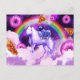 Cartão Postal Arco-íris no espaço montando um unicórnio