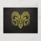 Sinal do zodíaco Áries em dourado sobre textura de couro preto.