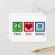 Cartaz de uma bela arqueria. Belos cartões postais da Peace Love Archery com um sinal verde de paz, coração vermelho e alvo para um feriado arqueiro.