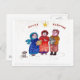 Como um cachorrinho fofo olha, três caroleiros saem de férias animando, tinta original no desenho de papel de Evelyn Model.