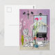 Cartão postal com pintura de colagem original, ao estilo do deco, intitulada "Erte-esque", da artista Jayne Somogy ("Somogyi"). www.Jayne-Somogy.pixels.com.