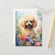 Arte colorida em aquarela de um Poodle sentado em um campo de flores da primavera.