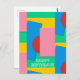 O elegante design geométrico colorido apresenta formas em cores rosa, vermelho, amarelo, azul e verde em um padrão divertido - junto com um campo de tipografia personalizável, que atualmente lê "Feliz Aniversário!" para desejo ou outra personalização em fonte branca. Para pedidos especiais ou perguntas, entre em contato com o artista em wafadahdalcreates@gmail.com. © Wafa Y. Dahdal - Todos os Direitos Reservados. WD Art