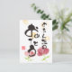 Cartão Postal Arte de Caligrafia Japonesa Floral "Feliz Aniversá