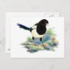 Cartão Postal Arte de Pássaro de Magpie com Aquarela Curiosa
