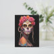 Cartão Postal Arte do Crânio do Açúcar - Rapariga com Cabelo Bra