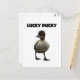 Esta charmosa design apresenta uma fotografia a cheio de um adorável patinho marrom e branco, capturado por trás enquanto se afasta. Com penas suaves, felpudos e pequenos pés de teia, o passarinho irradia gentileza e chorona. Acima do patinho, a frase lúdica "Sortudo Ducky" é escrita em uma fonte divertida e ousada, acrescentando humor e personalidade. Perfeito para amantes de os animais, entusiastas de pássaros, e qualquer um que goste de designs leves.