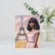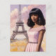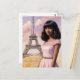Oh la la! Esta linda menina negra em Paris, França com um pano de fundo da Torre Eiffel está servindo um brilho elegante feminino nesta trabalho de arte de inspiração francesa. Ela está balançando um corte de cabelo de na moda com dentes e um vestido sofisticado, rosa pastel, sofisticado estilo de moça da cidade.