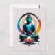 Uma estátua de Buda está sentada em meio a um colorido círculo Zen, com uma flor de lótus.