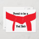 Personalize as Artes Marciais Orgulhosas para ser um Cartão-postal Red Belt com a sua própria mensagem pessoal de parabéns ou obrigados. Adequado para karatê, taekwondo, kung fu ou judo, esta placa de artes marciais personalizada é uma fotografia digitalmente melhorada de um cinturão de artes marciais amarrado num nó com fundo branco.