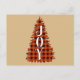Um cartão postal de árvore de Natal adorável, xadrez de madeira, a palavra "Joy" é escrita em letras brancas. Personalize o seu hoje! Trabalho de arte criado por: AMBilustrações http://www.etsy.com/shop/AMBillustrations/