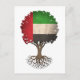 Este design único do artista Jeff Bartels mostra a bandeira dos Emirados Árabes Unidos em uma árvore estilizada. A bandeira aparece nas folhas da árvore com o tronco que vai até as raízes visíveis. Uma textura áspera leve dá ao design uma aparência rústica, vintage e na moda. O plano de fundo pode ser personalizado para qualquer cor que você queira fazer do padrão seu próprio. Esta bela árvore da vida nos Emirados Árabes é uma combinação perfeita de patriotismo e natureza.