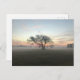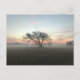 Uma árvore solitária fica no meio de um campo de nebulosidade, com um céu dramático pintado em matizes cor-de-rosa suave e azuis à medida que o sol se põe. A paisagem serena evoca um senso de calma e paz. Eu tirei esta fotografia numa manhã de primavera cedo perto da nossa fazenda.